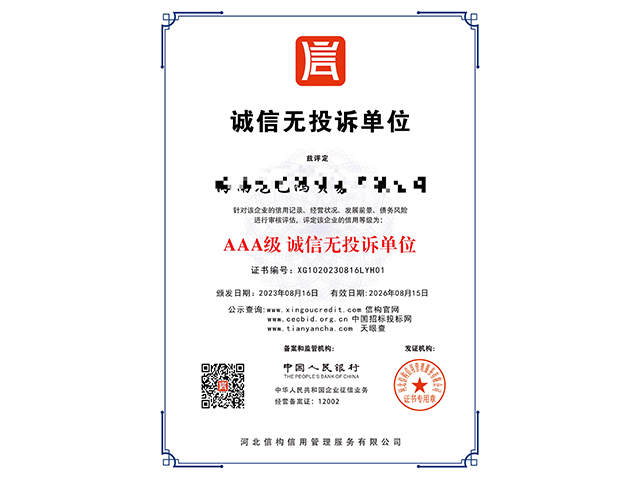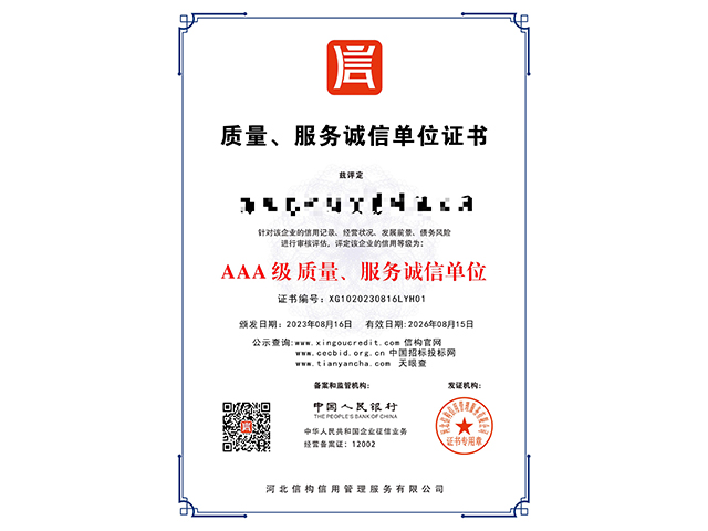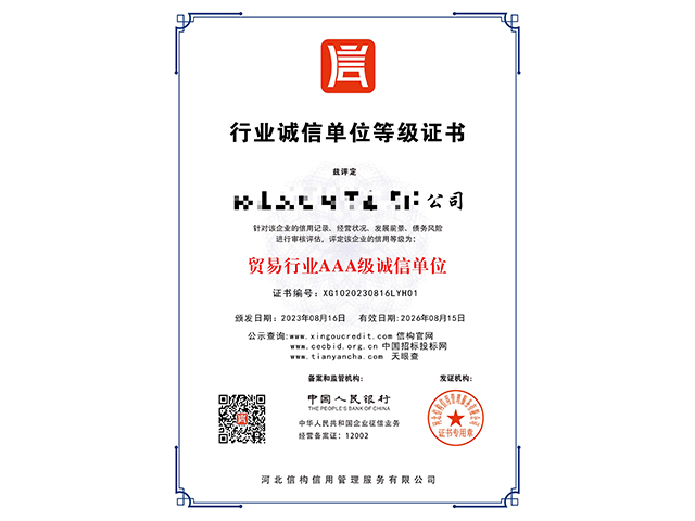 AAA級立信單位認證是對企業信用狀況的高度認可,表明該企業具有極高的信用度和良好的還···
